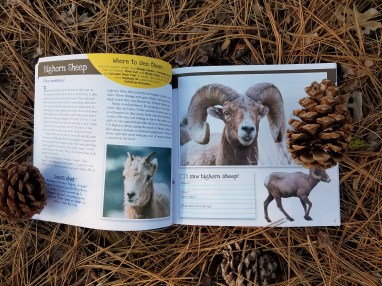 Like other books in this series, What I Saw in Rocky Mountain highlights some of the animals, plants, and places families are most likely to see during their visit to the park. Each section provides a kid-friendly description, detailed “where to see it” advice (though animals don’t always cooperate!), and a place to record sightings and experiences. Researching the fun “guess what?” facts sprinkled throughout the book was one of the best parts for me. Below I’ve given a peek inside the book, showing some of my favorite bighorn sheep pics by photographer Christopher Cauble.